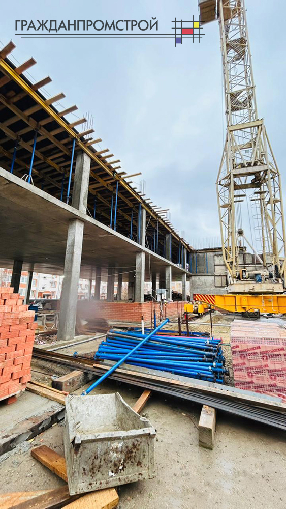 Строительная компания "Гражданпромстрой" продолжает работу над объектом по адресу г. Ейск, ул. Красная, 35/2.
